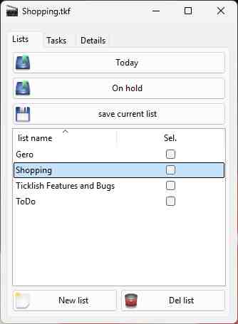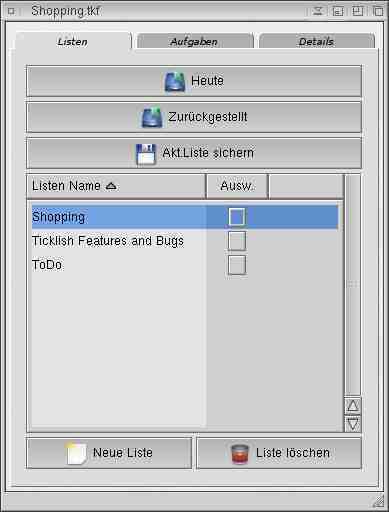 Lists Page = available ToDo Lists...Amiga OS4/German