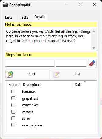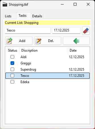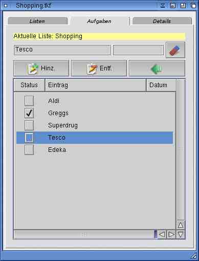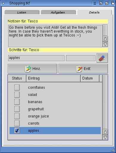 chosen on page "tasks". E.g. Shopping Items to be bought.